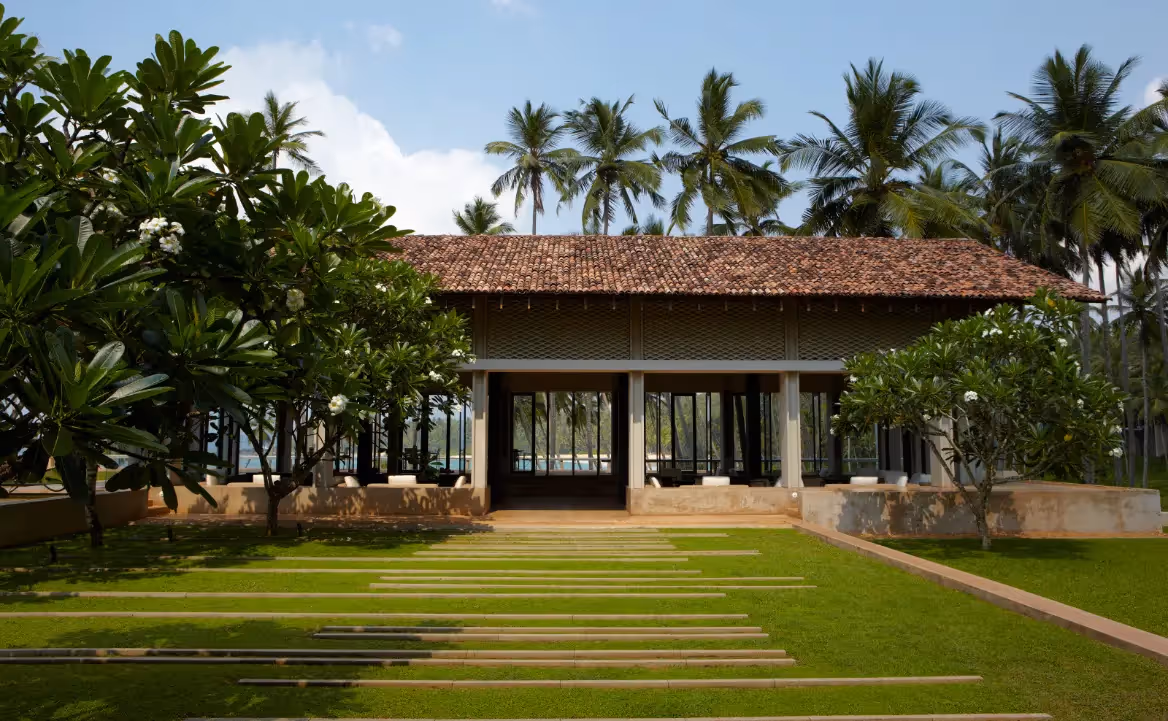 Minimal architecture, warm stone, palm-lined beach. A luxury Sri Lanka stay without noise.