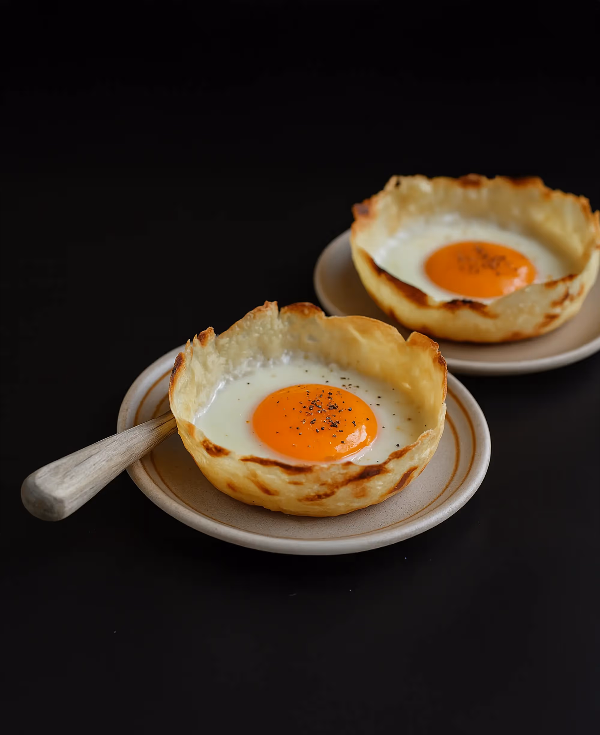 Bowl-shaped fermented rice pancakes, often served with egg or spicy sambal.