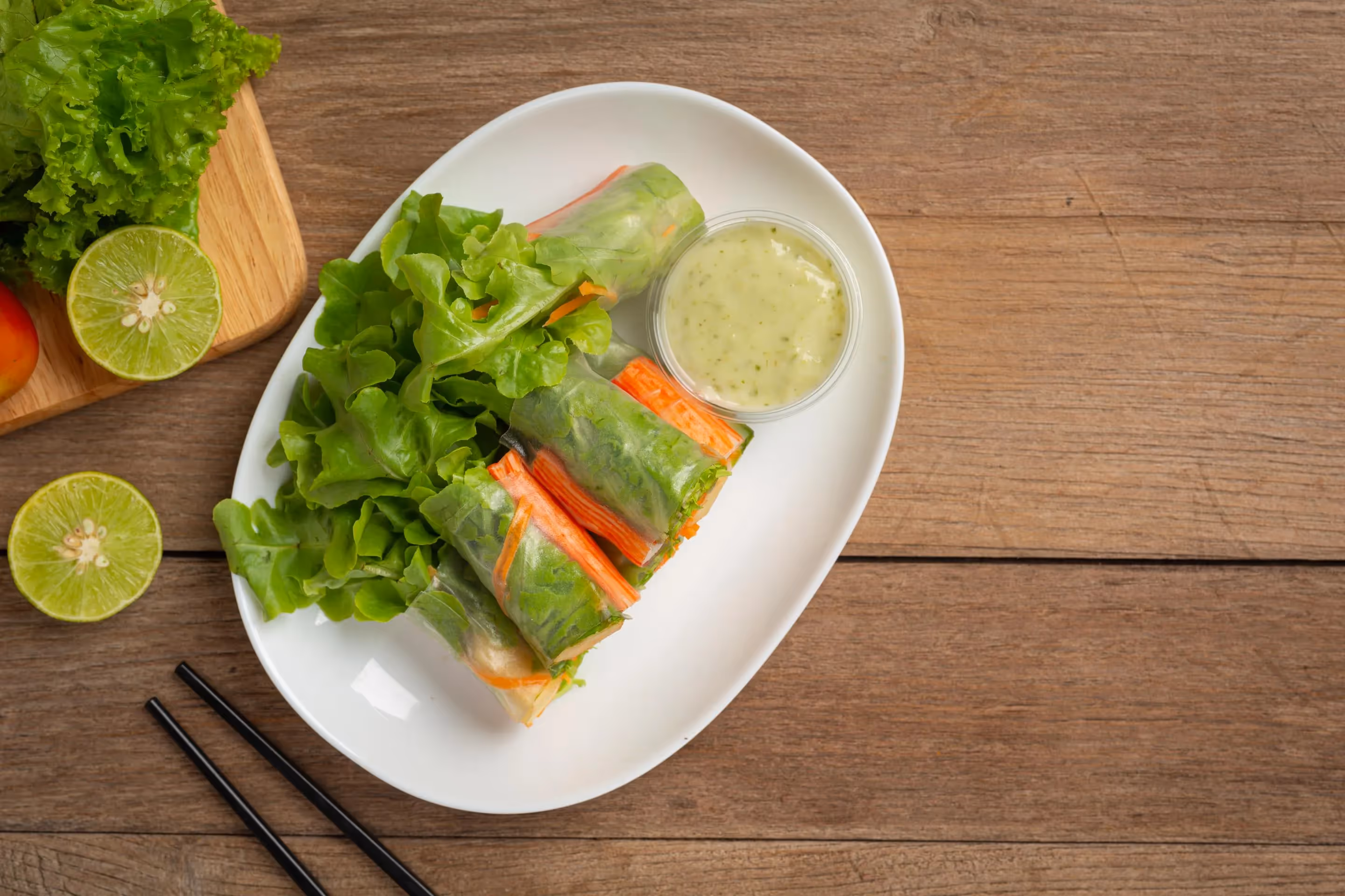 Cool, delicate rice paper rolls wrapped around shrimp, herbs, vermicelli, and lettuce. Dunk into hoisin-peanut sauce and feel like a wellness goddess — before going in for roll #5.