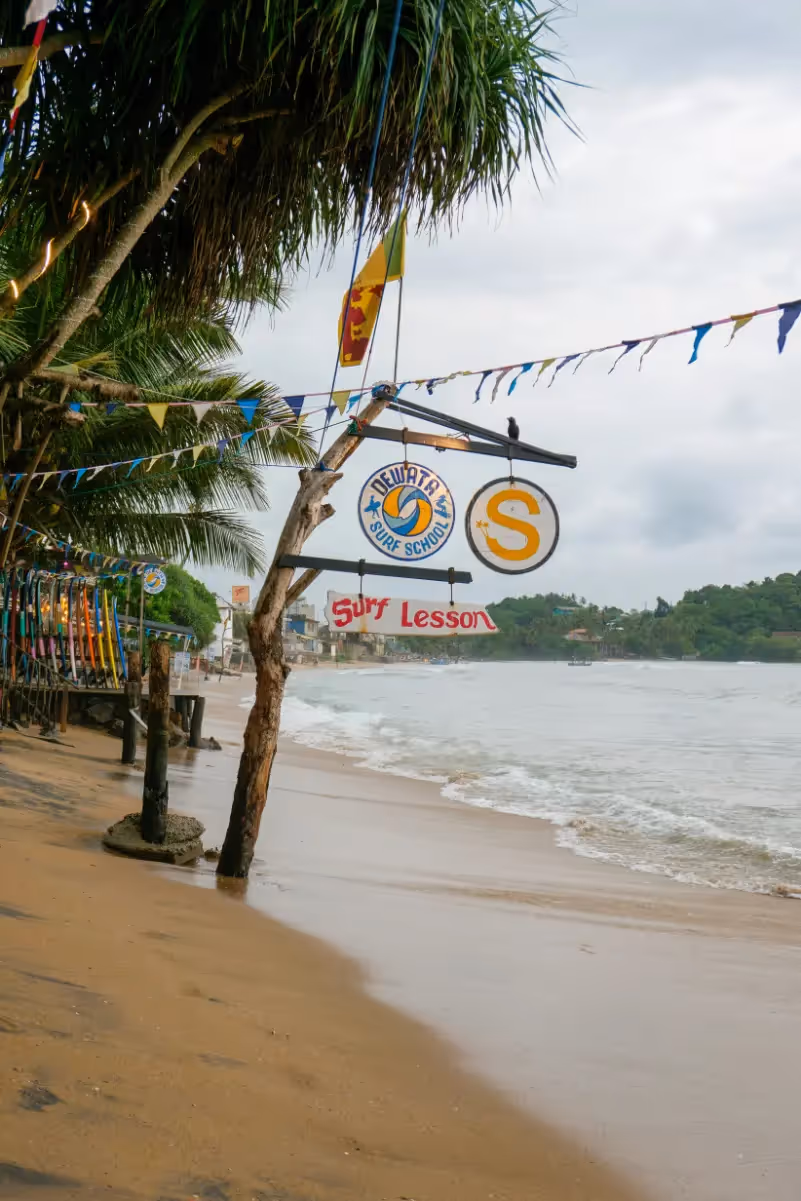 Weligama Bay is one of Sri Lanka’s best places to learn surfing in Weligama, thanks to its soft waves and sandy-bottom break. Professional Weligama surf lessons cater to beginners with board rental included.