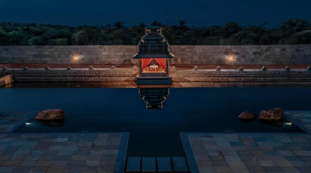 Set amidst the rugged landscapes and UNESCO ruins of Hampi, Evolve Back Hampi is a luxury heritage resort that mirrors the grandeur of the Vijayanagara Empire. Its regal interiors, stone-carved aesthetics, and themed suites make it feel like stepping straight into history. Guests can indulge in curated experiences such as guided Evolve Back cultural tours, heritage walks, and serene coracle rides along the Tungabhadra. A favorite among travelers from the USA seeking a Hampi ruins stay and those from Europe looking for boutique hotels in Hampi, it stands out as one of the most distinctive luxury hotels in Karnataka for foreigners, offering a truly immersive historic Hampi retreat at a UNESCO site stay in India