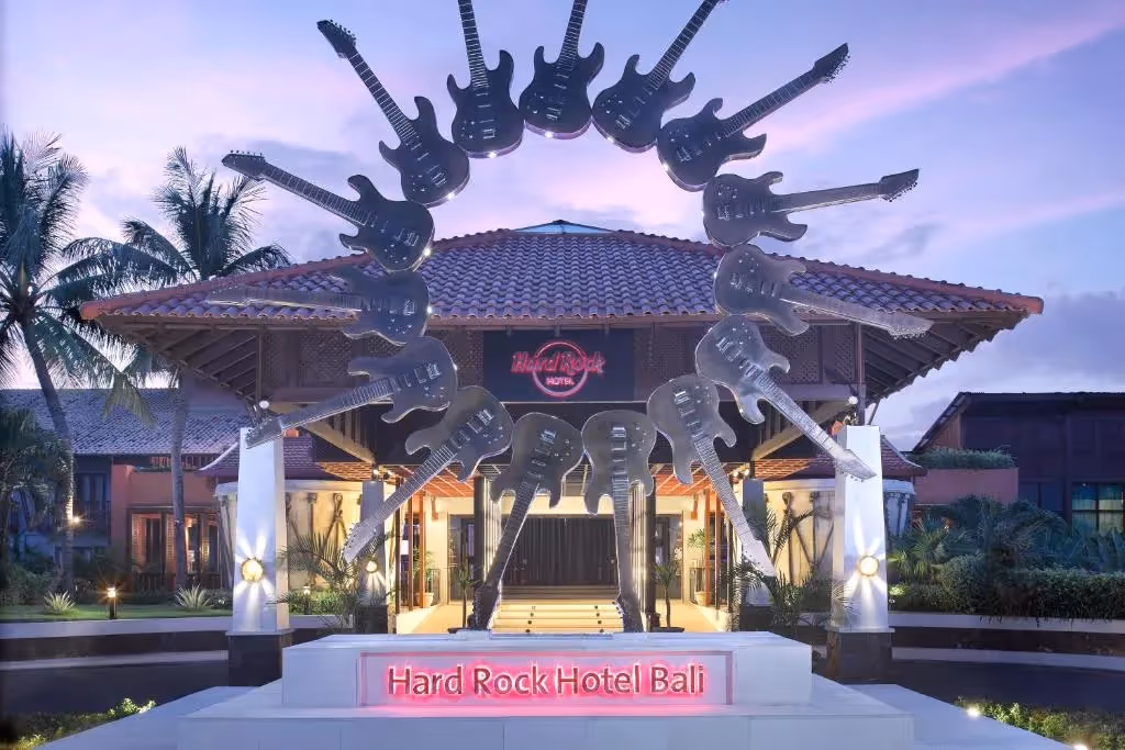 In the heart of Kuta’s vibrant beach scene, Hard Rock Hotel Bali is a family-friendly resort with live entertainment and the island’s largest swimming pool. Inspired by music and pop culture, it’s an energetic fun-filled boutique resort where families and groups enjoy curated entertainment, beachfront access, and endless dining options.