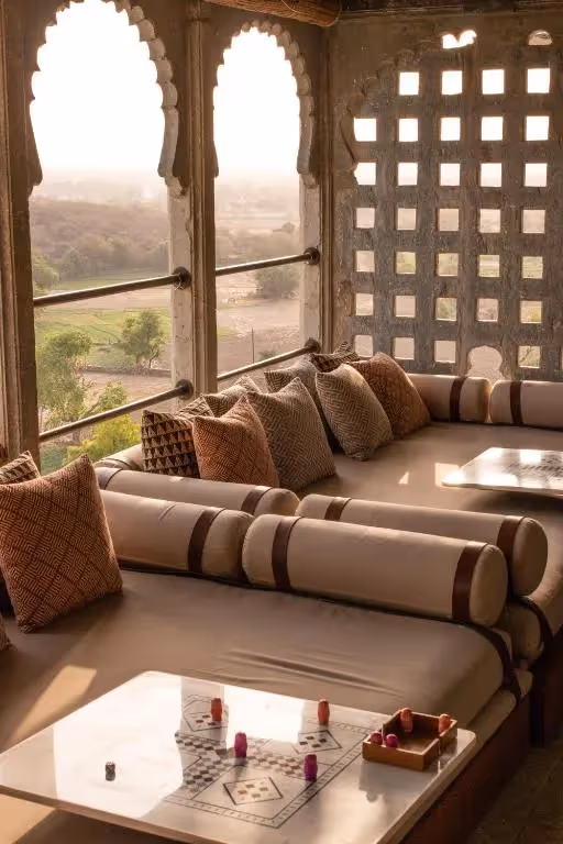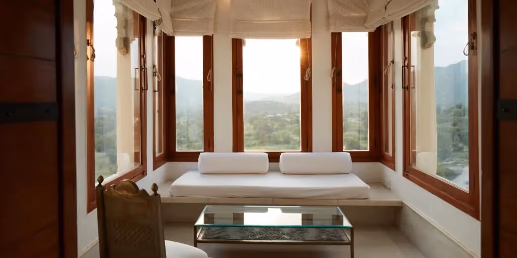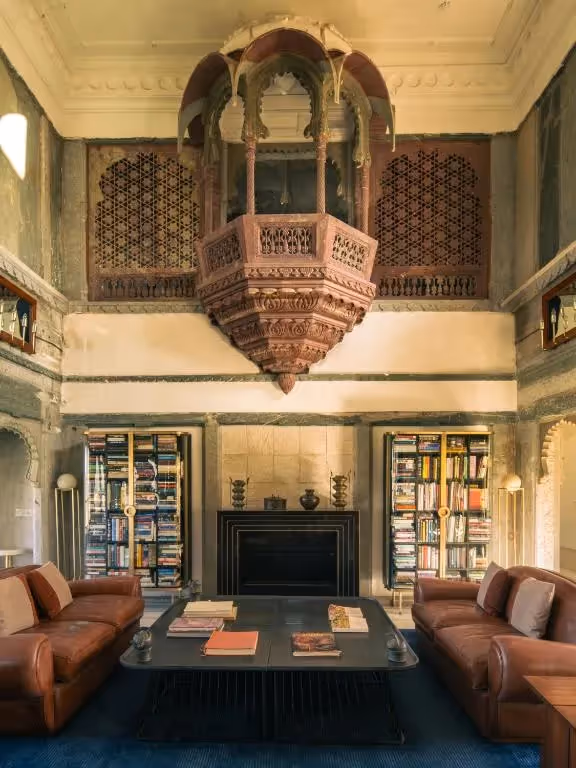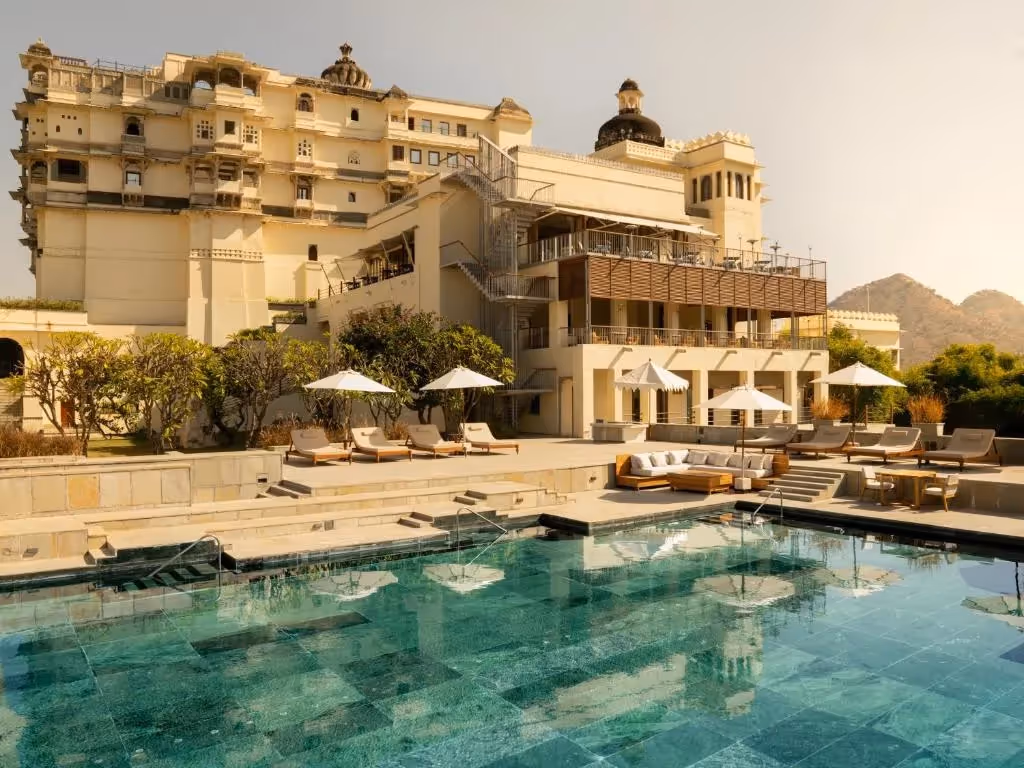 Nestled in the Aravalli Hills, RAAS Devigarh palace hotel is a restored 18th-century palace that offers a secluded luxury heritage stay near Udaipur. Its architecture showcases intricate stonework, frescoes, and serene courtyards, blending history with contemporary elegance. Guests can enjoy sweeping hill views, private terraces, and indulgent RAAS Devigarh spa stays, or immerse themselves in authentic Udaipur cultural experiences. Perfect for USA travelers seeking an Aravalli Hills retreat and Europe visitors drawn to historic palaces, RAAS Devigarh is also celebrated as an eco-conscious palace in India, making it one of the most refined luxury stays for foreigners in Rajasthan.