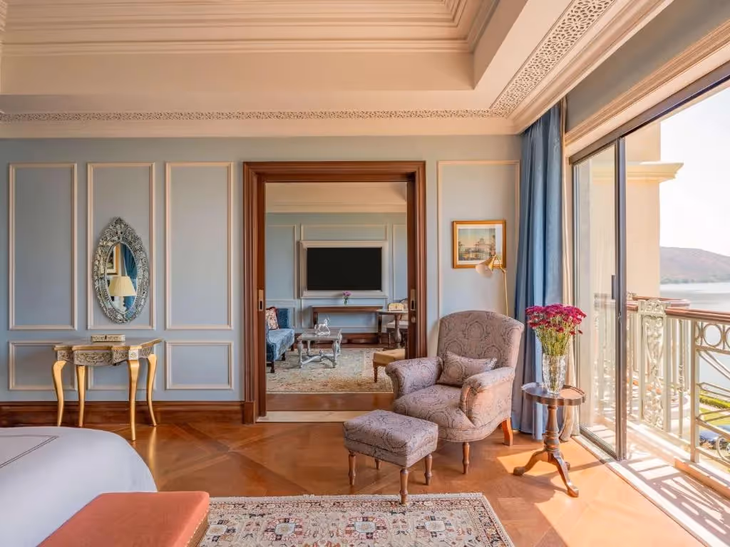 Set on a private island in the middle of Udai Sagar Lake, Raffles Udaipur luxury redefines modern indulgence with a serene escape. This high-end palace hotel in Udaipur combines Raffles’ legendary service with the city’s regal charm, where marble architecture, lush gardens, and sweeping lake views set the stage for romance and relaxation. Popular among travelers from the USA seeking a romantic retreat in Udaipur and those from Europe looking for a Raffles heritage stay, it is a standout among luxury hotels in Udaipur for foreigners. Guests can indulge in a Raffles spa retreat, enjoy curated dining, or embark on immersive cultural tours of Udaipur, making it a truly royal experience.