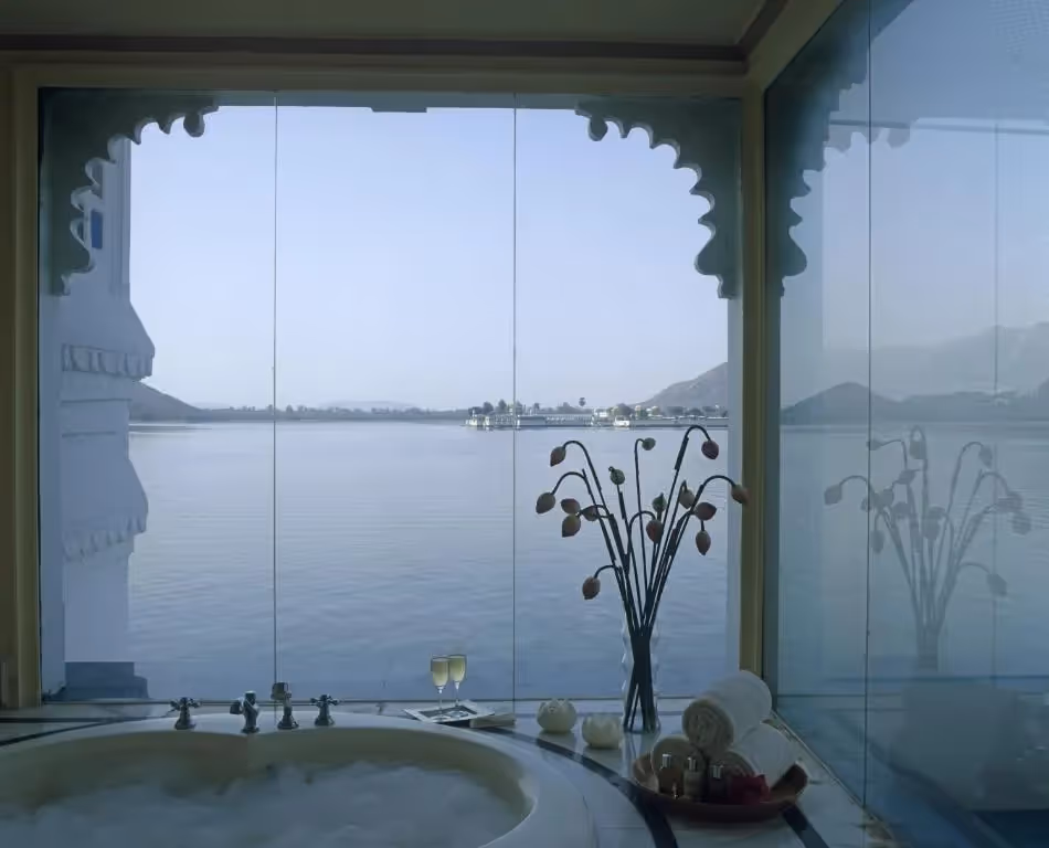 Floating like a dream on Lake Pichola, the 18th-century Taj Lake Palace Udaipur is one of the most iconic luxury palace hotels in India. Once a royal summer residence, it now offers a lakefront palace stay in Rajasthan that blends timeless opulence with unmatched views of Udaipur’s palaces and the Aravalli Hills. Perfect for USA travelers seeking an Udaipur lake retreat and Europe visitors looking for a romantic palace stay, the property remains a jewel among luxury hotels in Rajasthan, drawing foreigners eager to experience royal heritage in Udaipur.