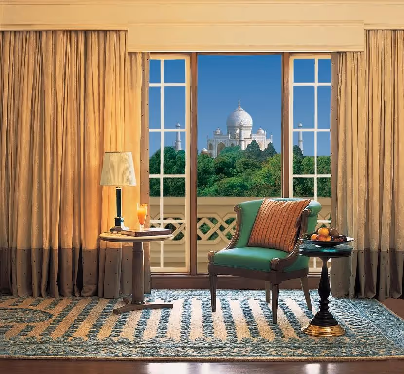 Just a stone’s throw from the Taj Mahal, The Oberoi Amarvilas Agra stands as one of India’s most iconic luxury hotels. Every room and suite is designed to offer uninterrupted Taj Mahal views, turning sunrise and sunset into unforgettable moments. With its Mughal-inspired architecture, terraced lawns, reflection pools, and fine dining, the property is often chosen by travelers from the USA seeking Agra heritage stays and by those from Europe looking for Oberoi luxury in Agra. Recognized among the finest luxury hotels in Agra for foreigners, it also serves as a romantic Agra retreat, with curated Oberoi cultural tours in India adding depth to the experience.